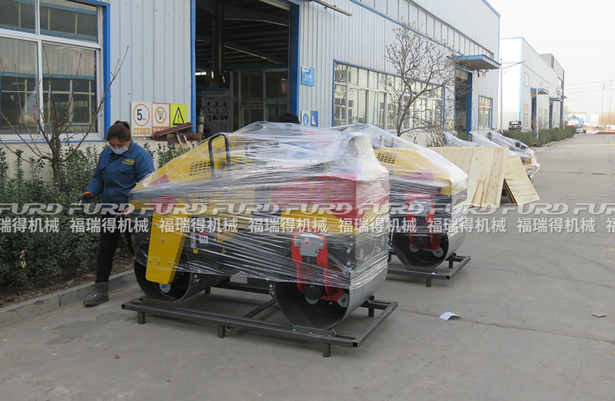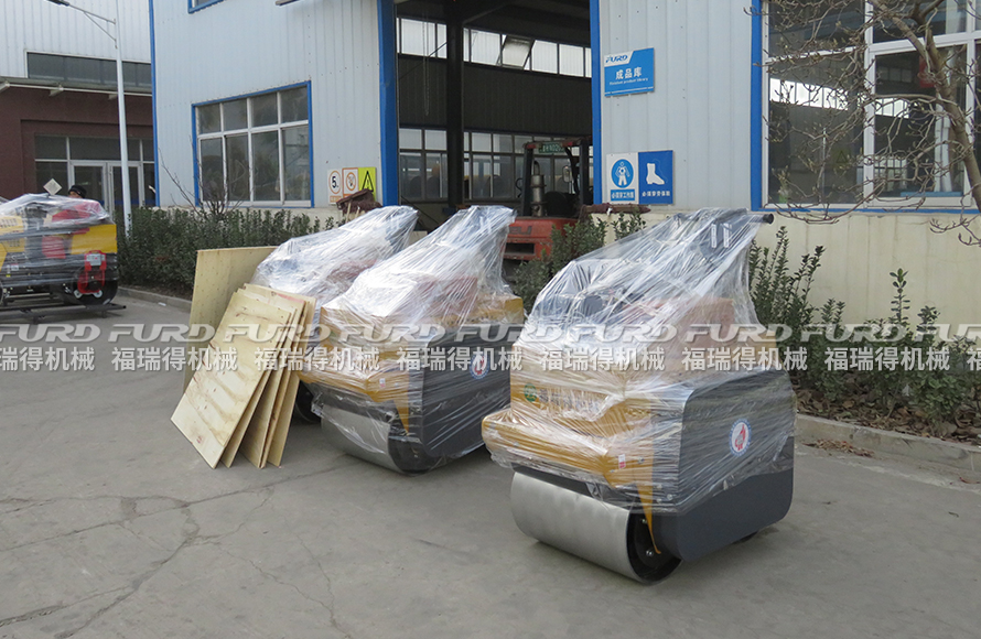 福瑞得5臺(tái)小型壓路機(jī)裝箱出口新加坡