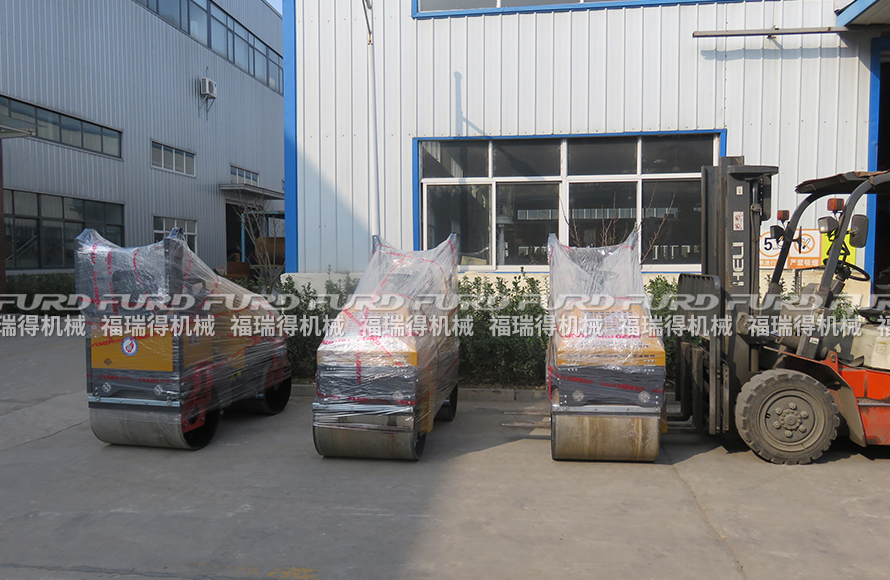 福瑞得機(jī)械3臺座駕雙鋼輪壓路機(jī)打包發(fā)往浙江