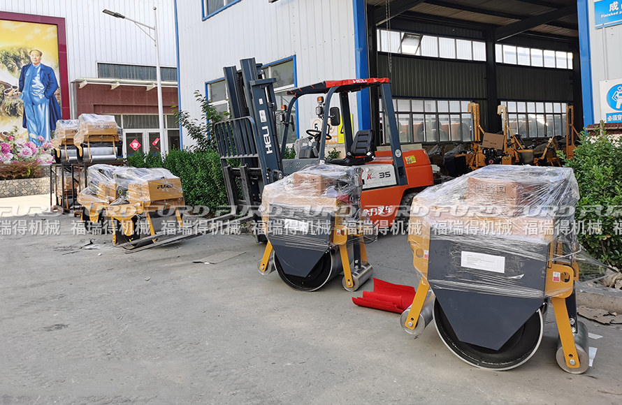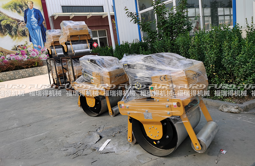福瑞得機(jī)械8臺手扶單鋼輪壓路機(jī)打包發(fā)往青島