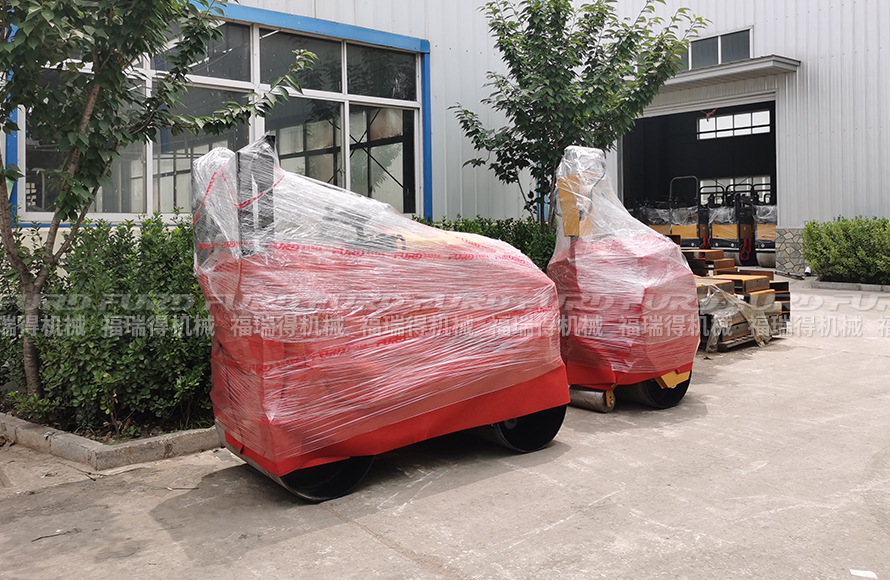 福瑞得機(jī)械2臺小型壓路機(jī)打包發(fā)往商丘