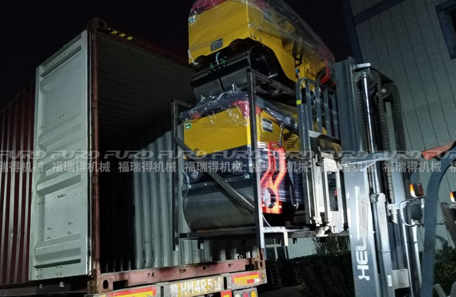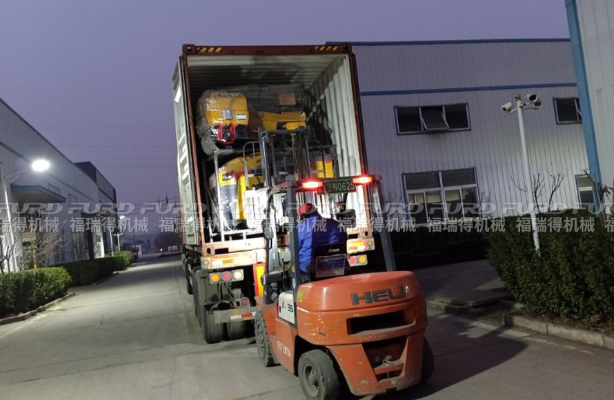 福瑞得機(jī)械一批壓路機(jī)打包裝柜出口埃塞俄比亞