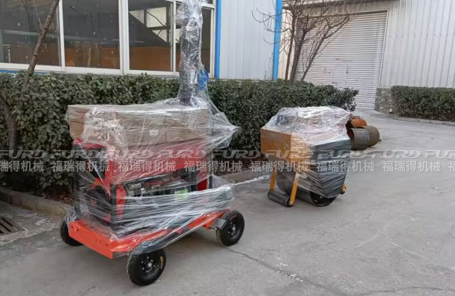 福瑞得1臺(tái)手扶壓路機(jī)和移動(dòng)燈車打包發(fā)往紹興