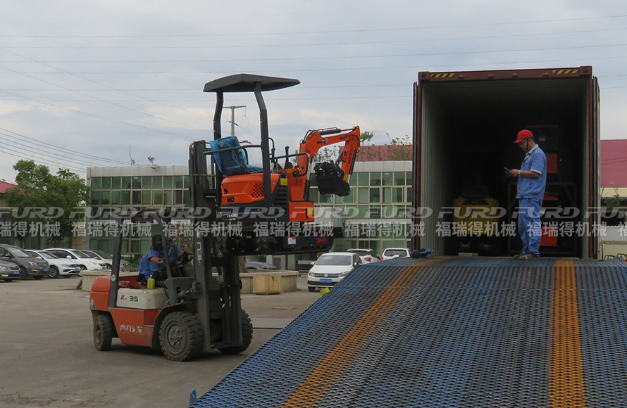 福瑞得一批路面機(jī)械裝柜出口馬來西亞