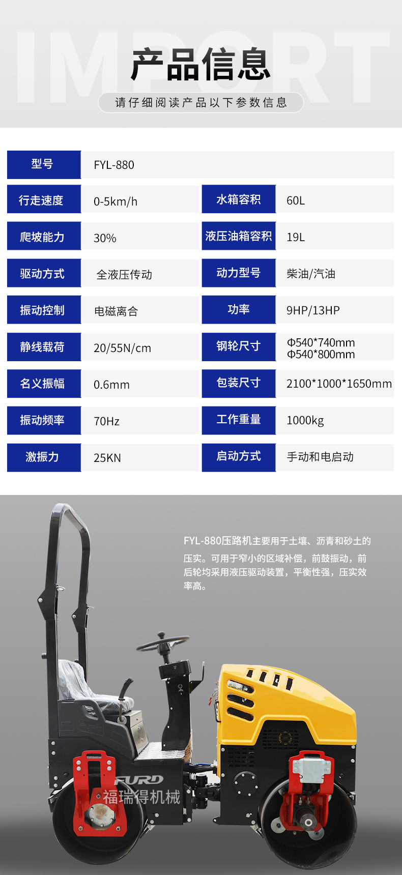 主要用于溝渠基礎(chǔ),道路,體育場(chǎng)地的壓實(shí)整平,也可用于壓實(shí)瀝青表面的作業(yè)。