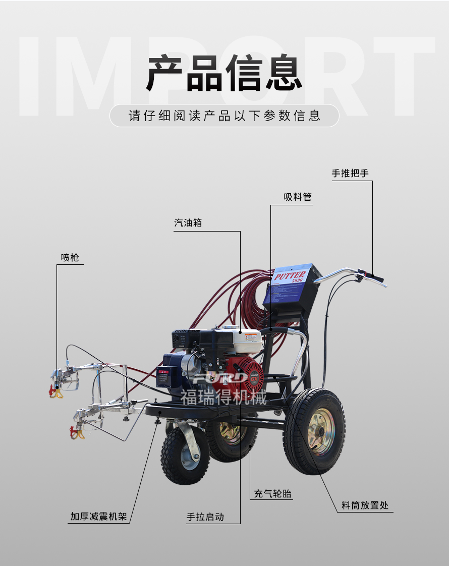小型手推式道路劃線機(jī)是一種在道路、停車場、廣場和跑道等平整地面上劃出不同約束、指引和警示等規(guī)則限制標(biāo)志的路面施工機(jī)械。最常見的就是在馬路上劃斑馬線,在路上劃車庫線、停車線等等應(yīng)用于小型工程、短途施工,活動方便,靈活操作。