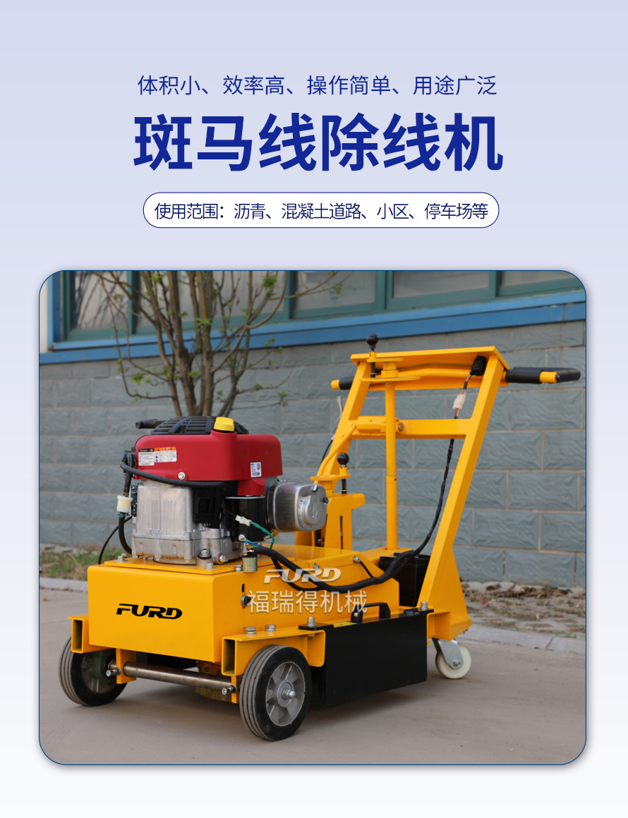特點(diǎn):體積小、重量輕、機(jī)動(dòng)靈活、工作效率高、操作簡(jiǎn)單。 適應(yīng)范圍:主要用于瀝青道路、混凝土道路、物業(yè)小區(qū)、機(jī)場(chǎng)、停車場(chǎng)等地的標(biāo)線清除。
