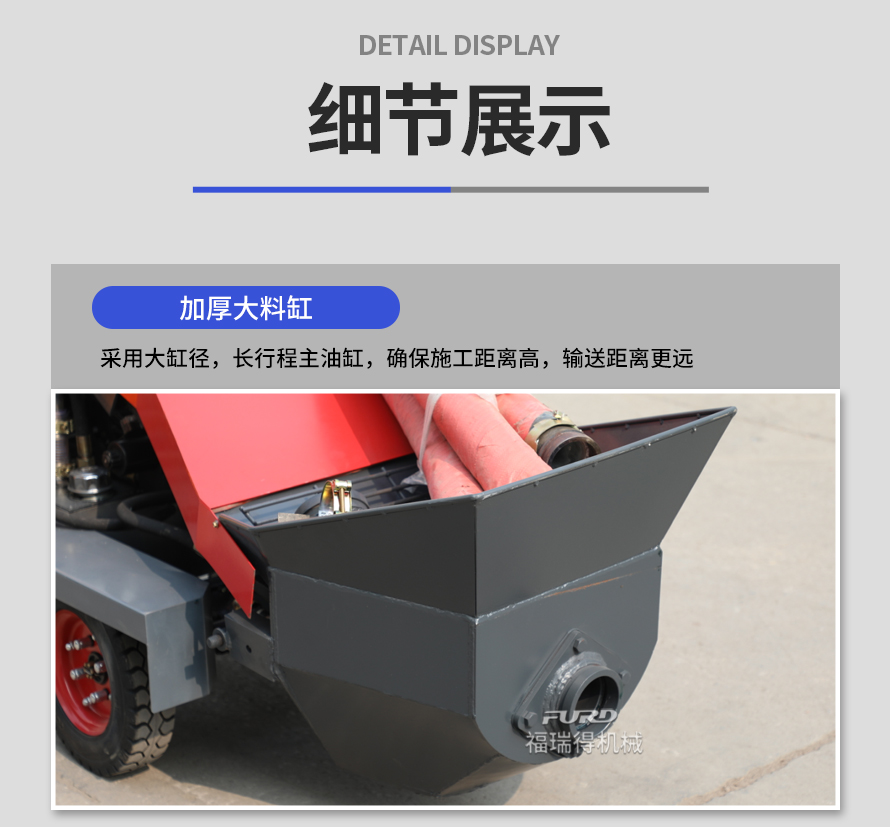 福瑞得二次結(jié)構(gòu)澆筑泵適用于商品房、農(nóng)村建房,打二次構(gòu)造柱,圈梁等,是您澆筑的好設(shè)備。電機功率小,體積小,重量輕,料斗可升降,真正能提高您的施工效率,是人工澆筑的幾十倍。