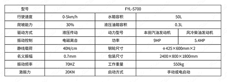 FYL-S700 手扶雙鋼輪小型振動(dòng)壓路機(jī)